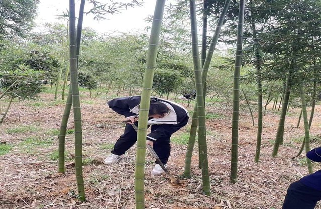 下午的活动更为丰富,教职工们分成挖笋队和采茶队,开启了体验之旅。采茶队走进了千亩茶园,在茶农指导下,大家学习“一芽一叶”的采摘技巧,并观摩古法制茶工艺,体验杀青、揉捻等工序,感受茶文化的深厚底蕴;时下正值雷竹春笋丰收季,挖笋队深入竹林体验挖笋乐趣。大家手持铁锹、竹篮,穿梭于竹海之间,探寻破土而出的鲜嫩竹笋,感受春日山野的生机。部分教职工还参与了村里面举办的cosplay游园会活动,进一步领略乡村生态与人文的和谐之美。活动最后,教职工们满载亲手制作的茶叶、染布以及劳动所得的春笋,带着美好的春日记忆,乘兴而归。